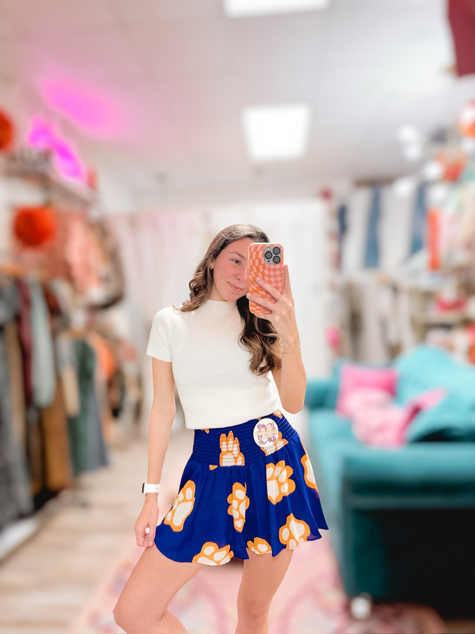 Bailee Tiger Paw Smocked Wide Waist Swing Short with Lining
