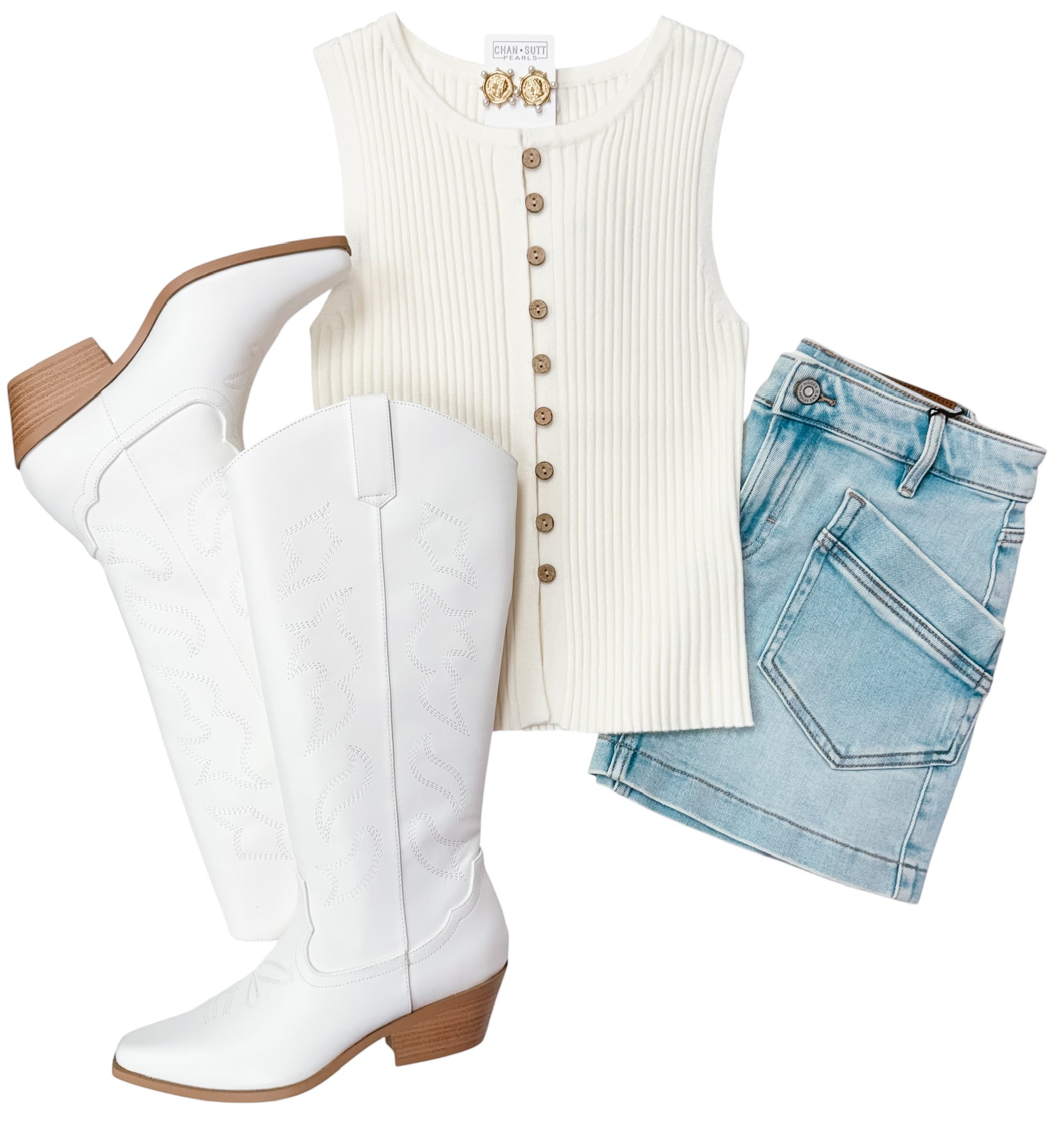 Vanilla Ribbed Sleeveless Button Sweater
