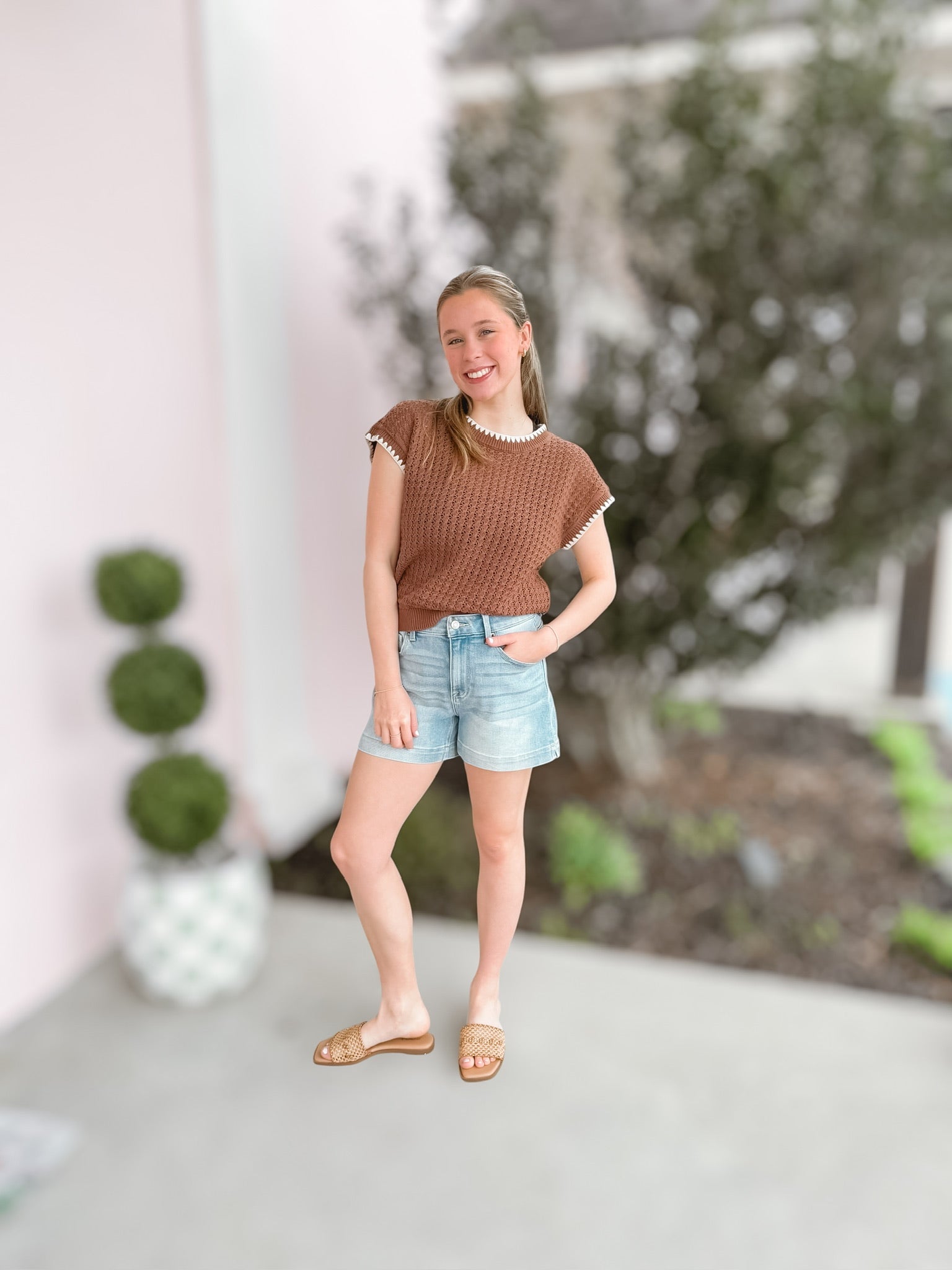 Mocha & Cream Contrast SS Sweater