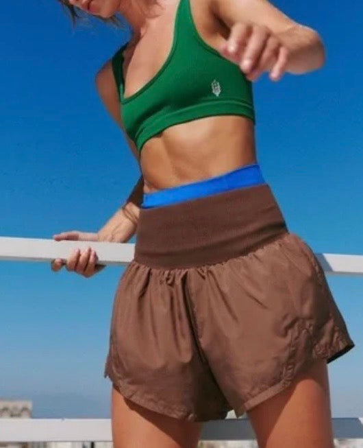 Seize the run in these so-flattering shorts, featuring a durable, water-resistant fabrication, built-in briefs and a knit high-rise