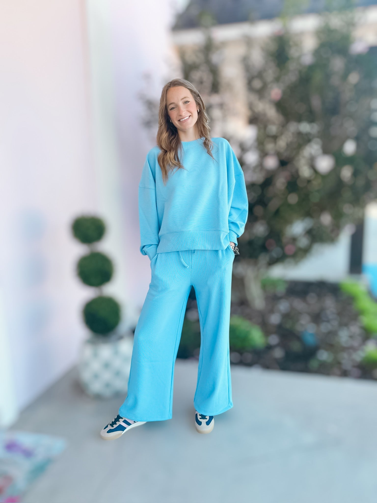 Corn Flower Blue Ribbed Pants Set