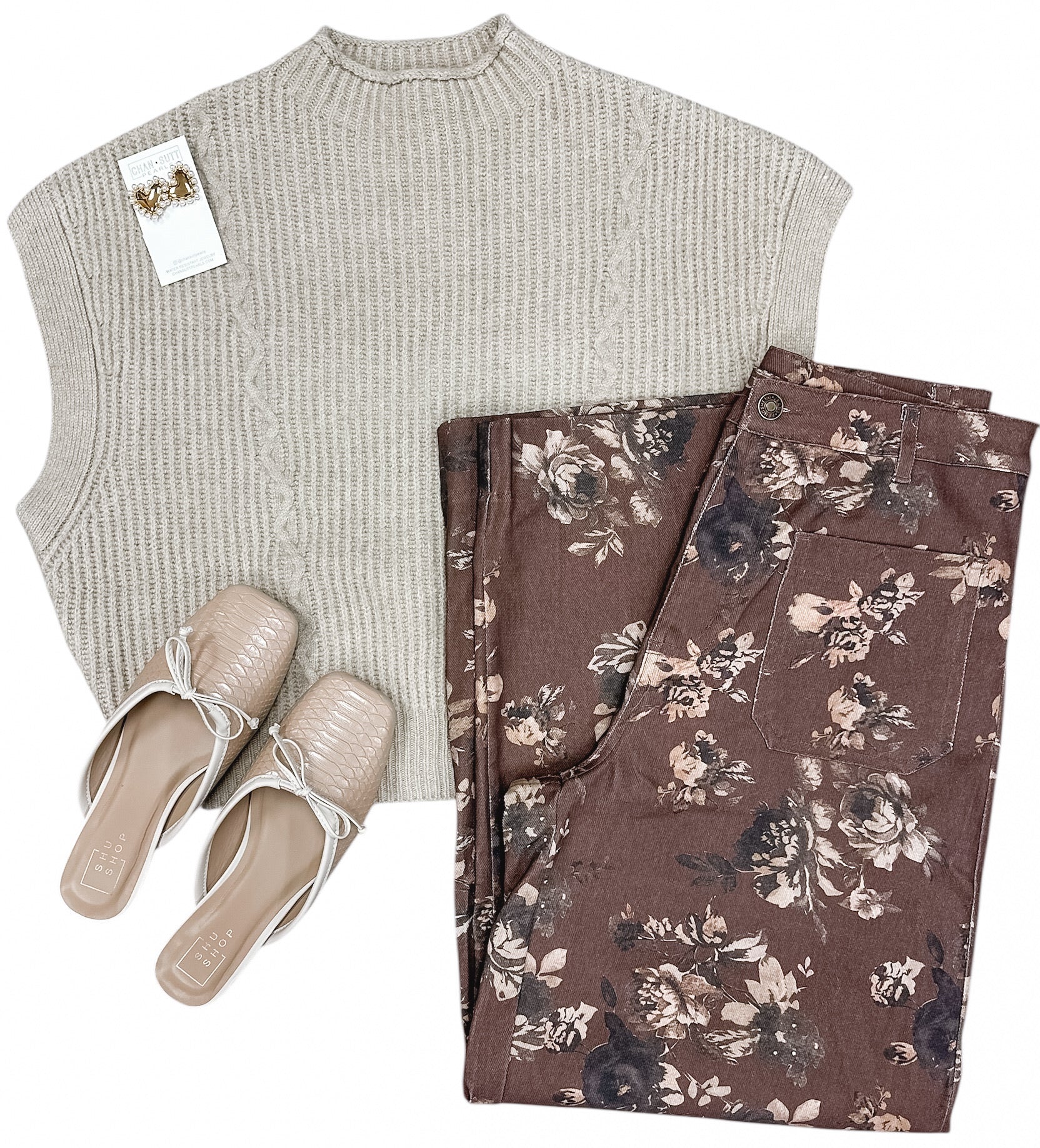 Mocha Mousse Mock Neck Sweater Short Sleeve