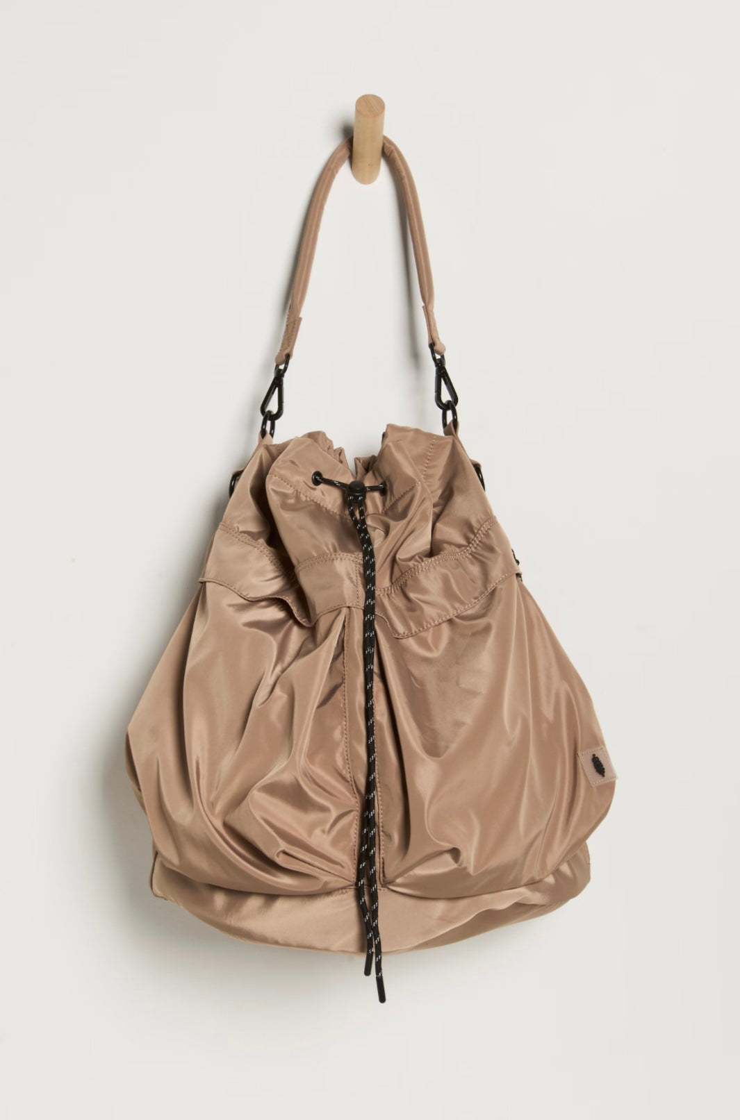 The true definition of an effortless essential, this super sporty bag is featured in an oversized, bucket-inspired style and super sporty, poly fabrication with exaggerated pockets and bungee-inspired zip detailing for a true utility-inspired touch.