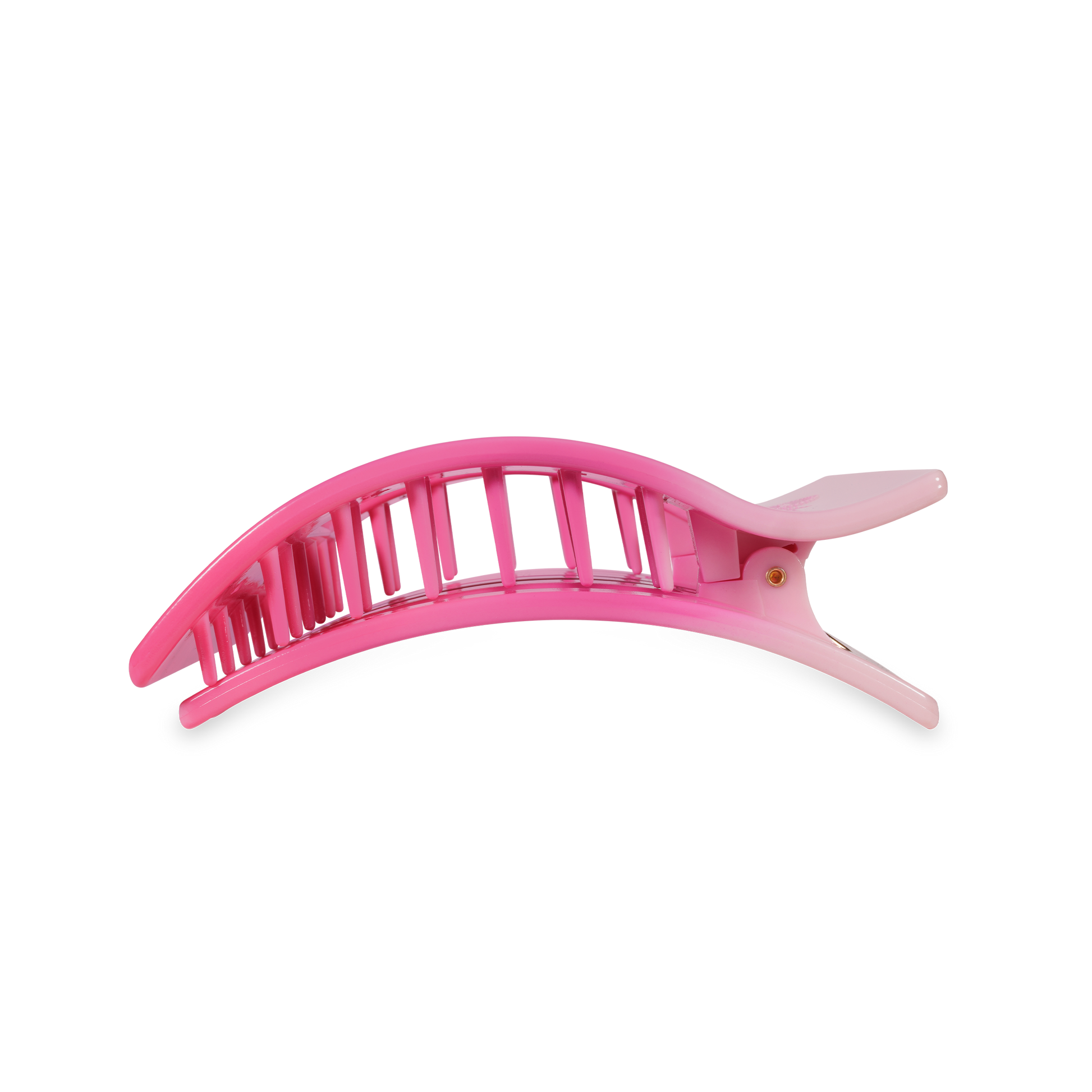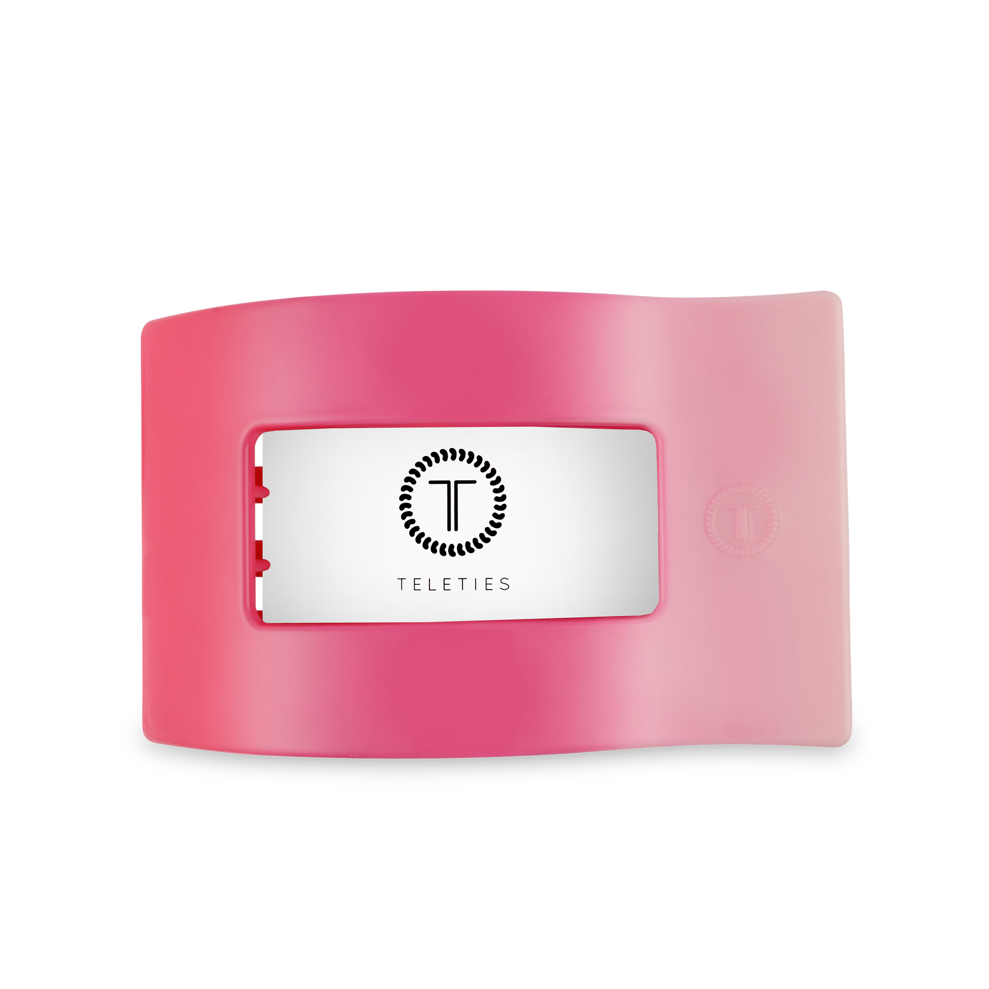 Lean back and relax - comfort just got a new shape. Introducing the TELETIES Kiss & Tell Large Flat Rectangle Hair Clip in Pink, the newest addition to our best-selling Flat Clip Collection. Joining the original Round and Square styles, this elevated rectangular design offers the same flat-back comfort and stronghold TELETIES is known for - now with a sleek, modern style.