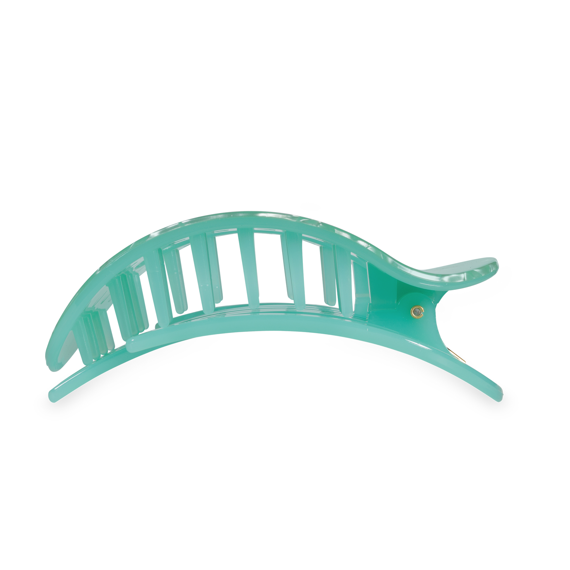 Lay flat and relax with the new TELETIES Spring Splash Large Flat Round Hair Clip in Green. This hair clip is designed to allow you to lay back flat, do yoga, or sit comfortably in a seat with a headrest, and it is made with the same material that is nearly unbreakable.