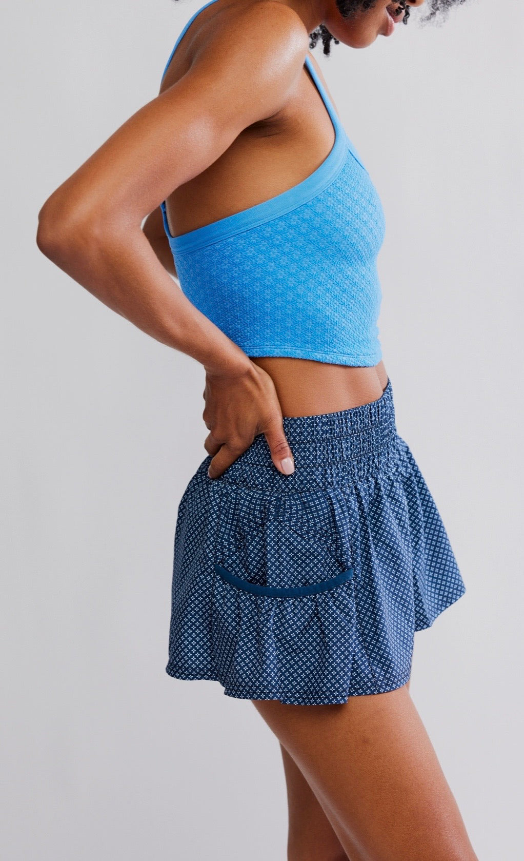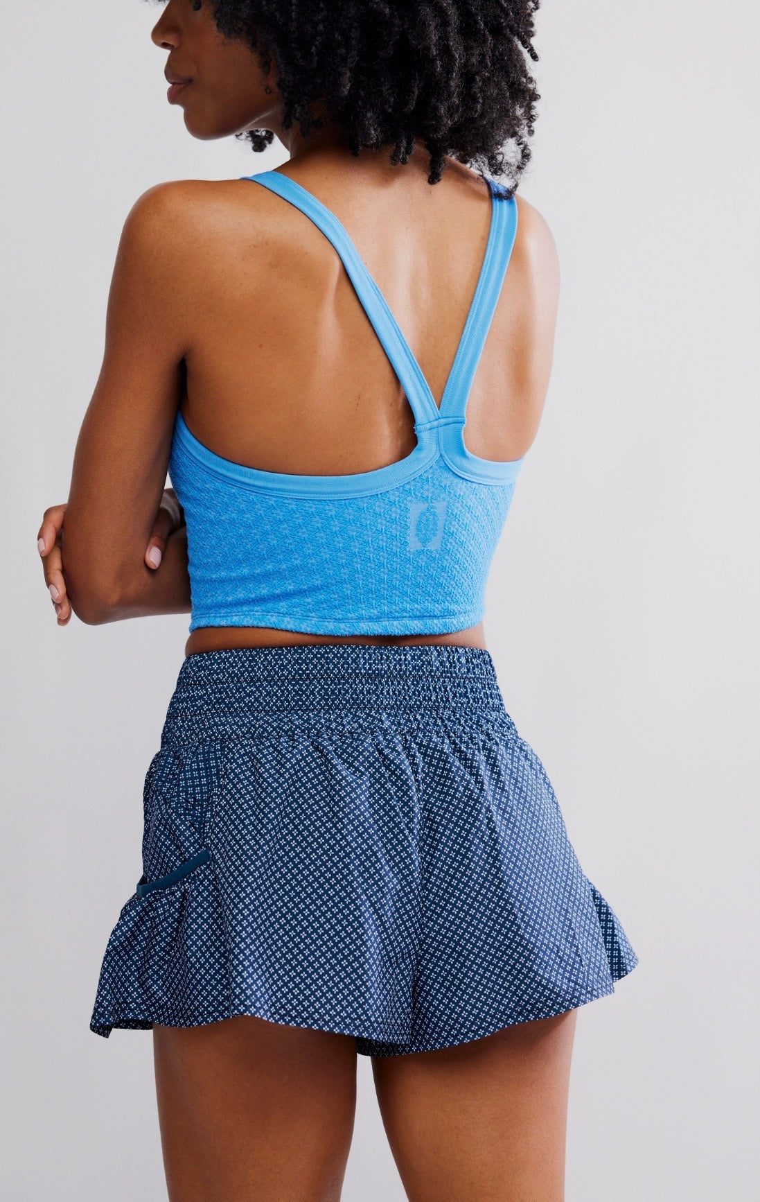 So flirty and fun shorts to spice up your workout attire, featured in a flowy style with a high-rise, smocked waistband and side pockets.