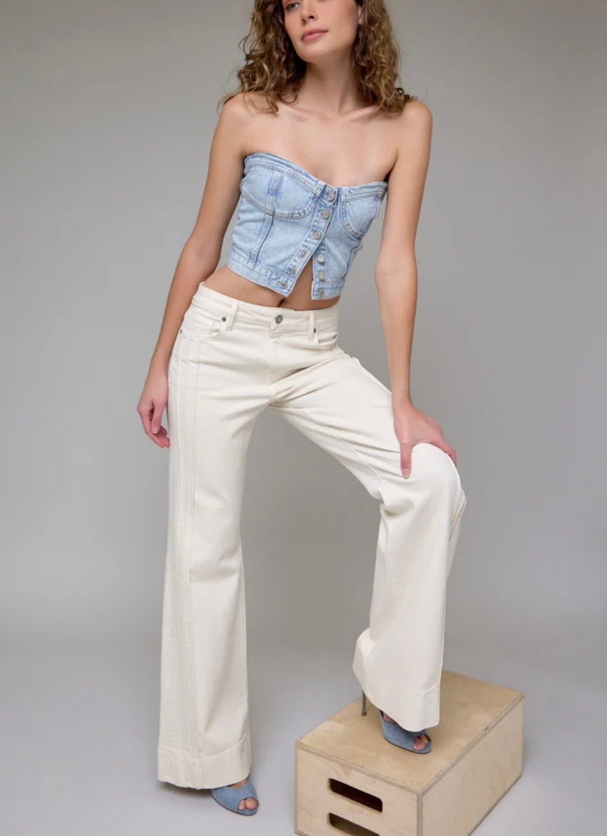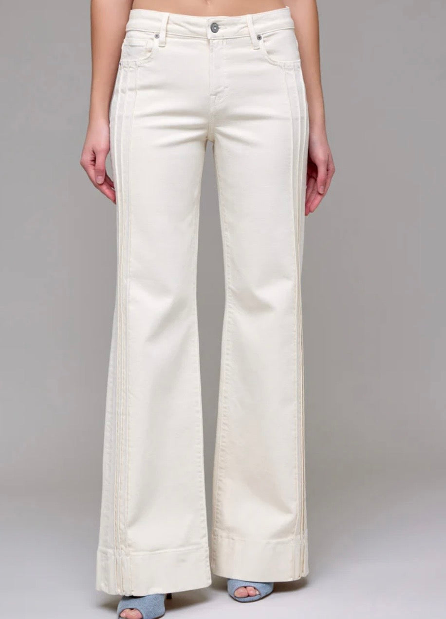 Happi Ecru Wash Pintuck Mid Rise Comfort Flare