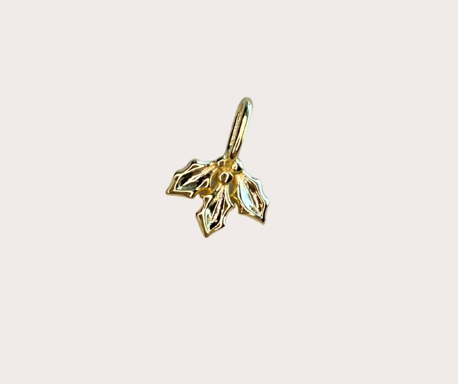 Details Material: 14k gold plated brass Size: Under 1/2" Style: Christmas Charm Why We Love It! Nothing makes up happier than looking forward to the Holiday Season! Get all the Christmas feels with this adorable holly charm.