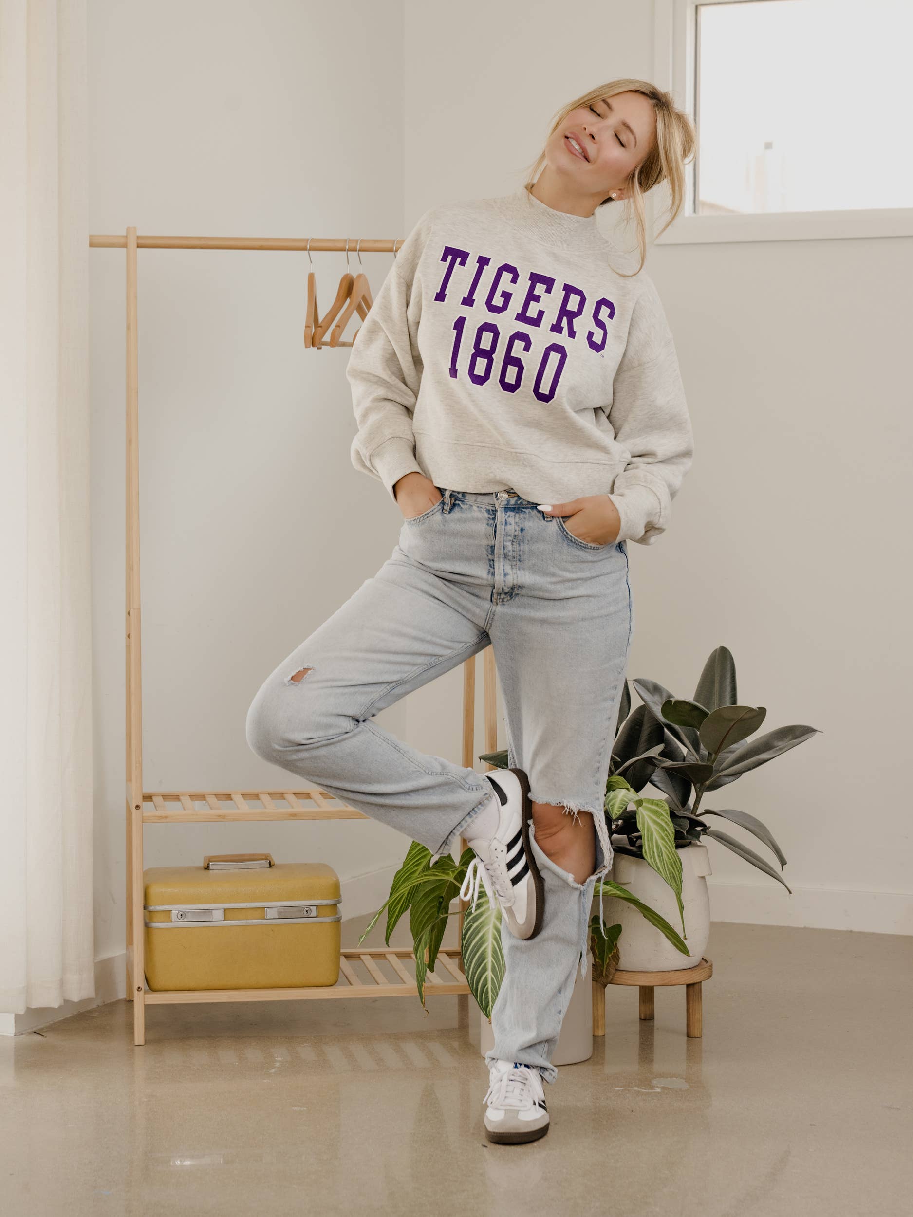 LSU Tigers College Block Puff Ink Gray Mock Neck Sweatshirt