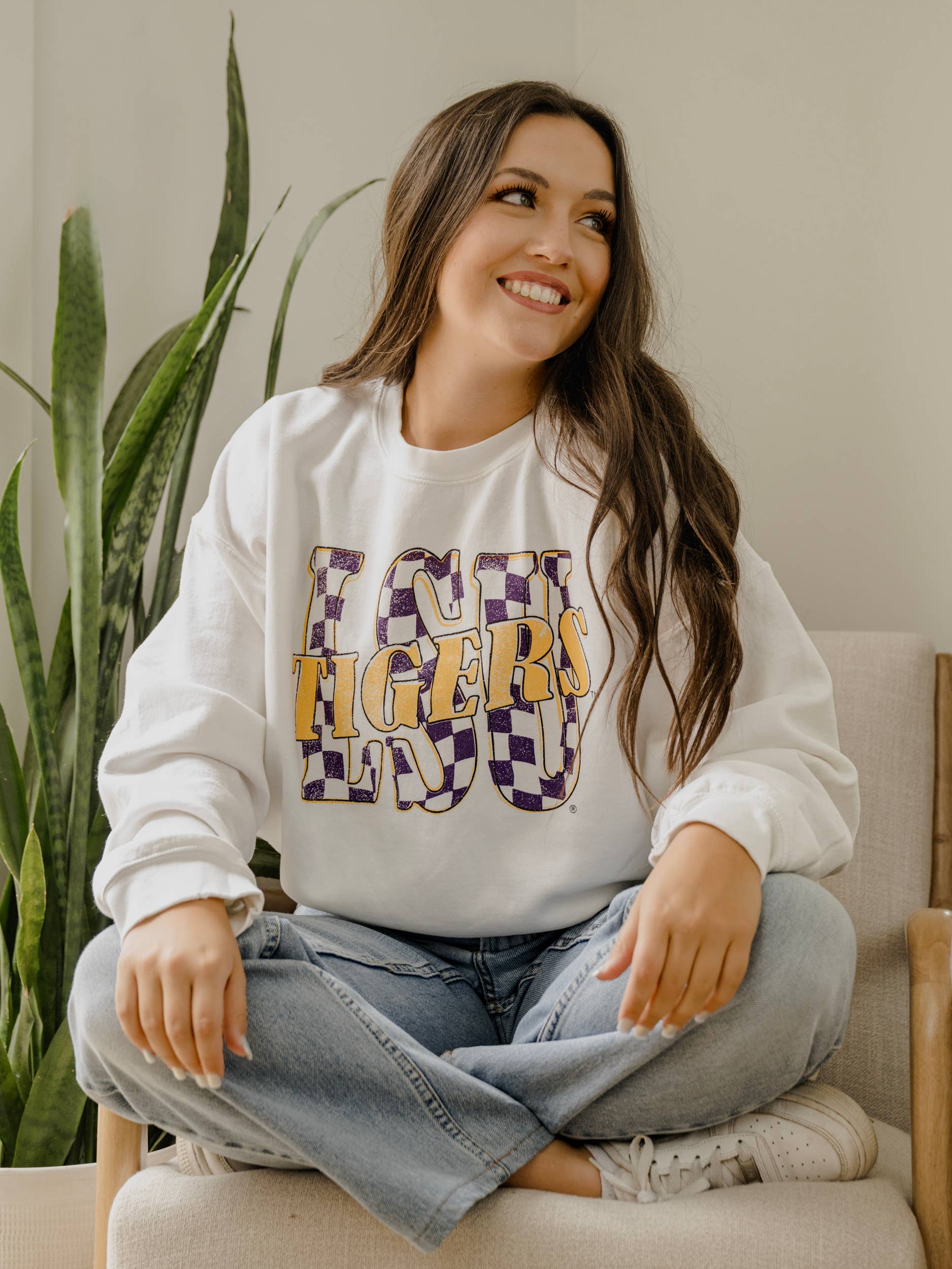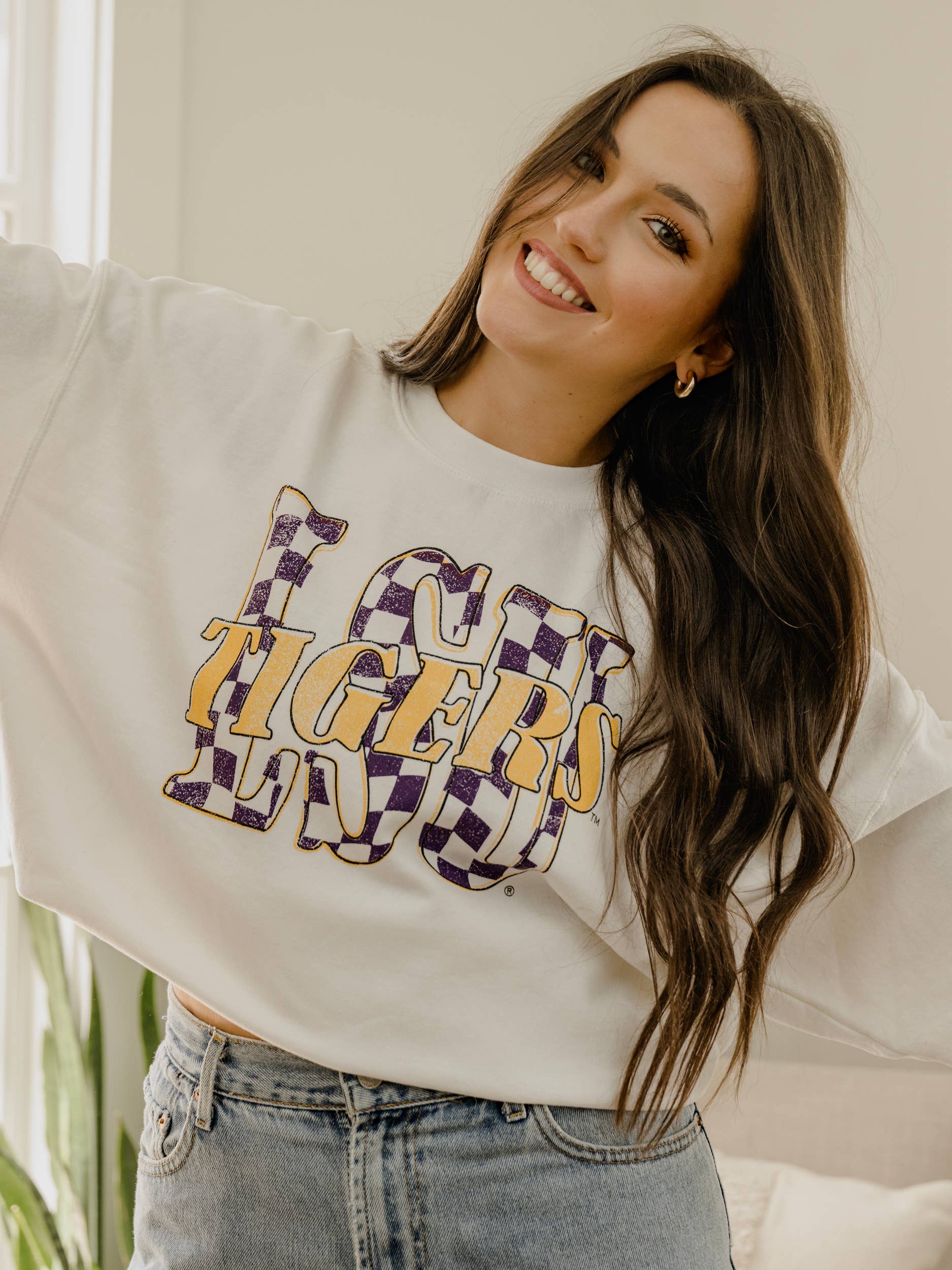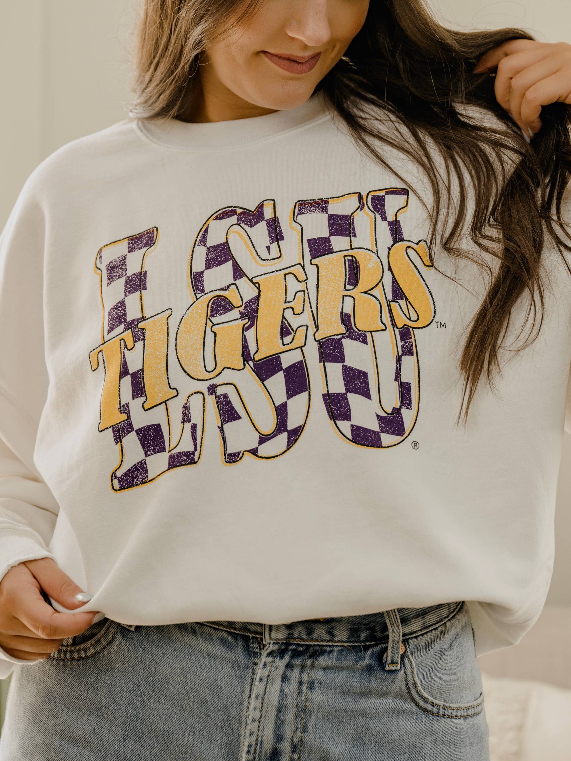 LSU Tigers Twisted Check White Thrifted Sweatshirt