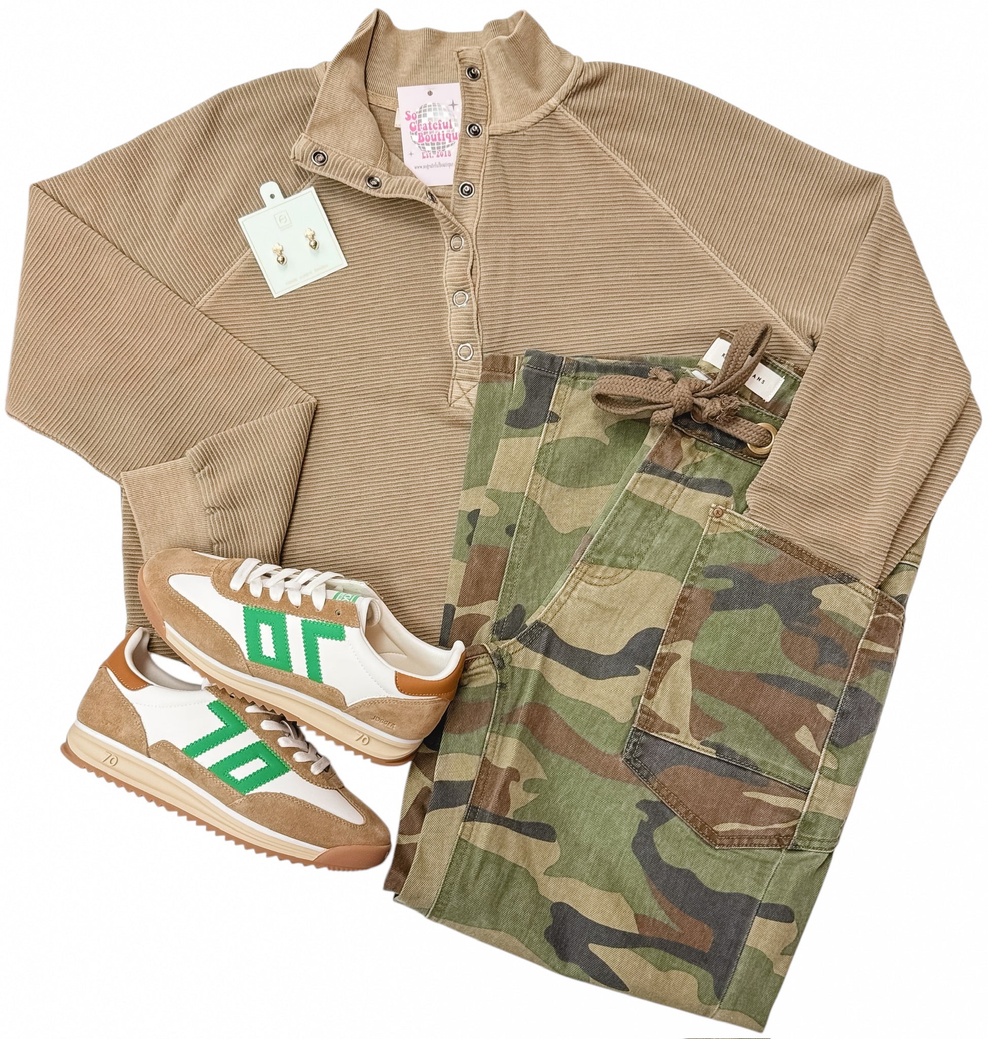 Mocha Half Snap Long Sleeve Top