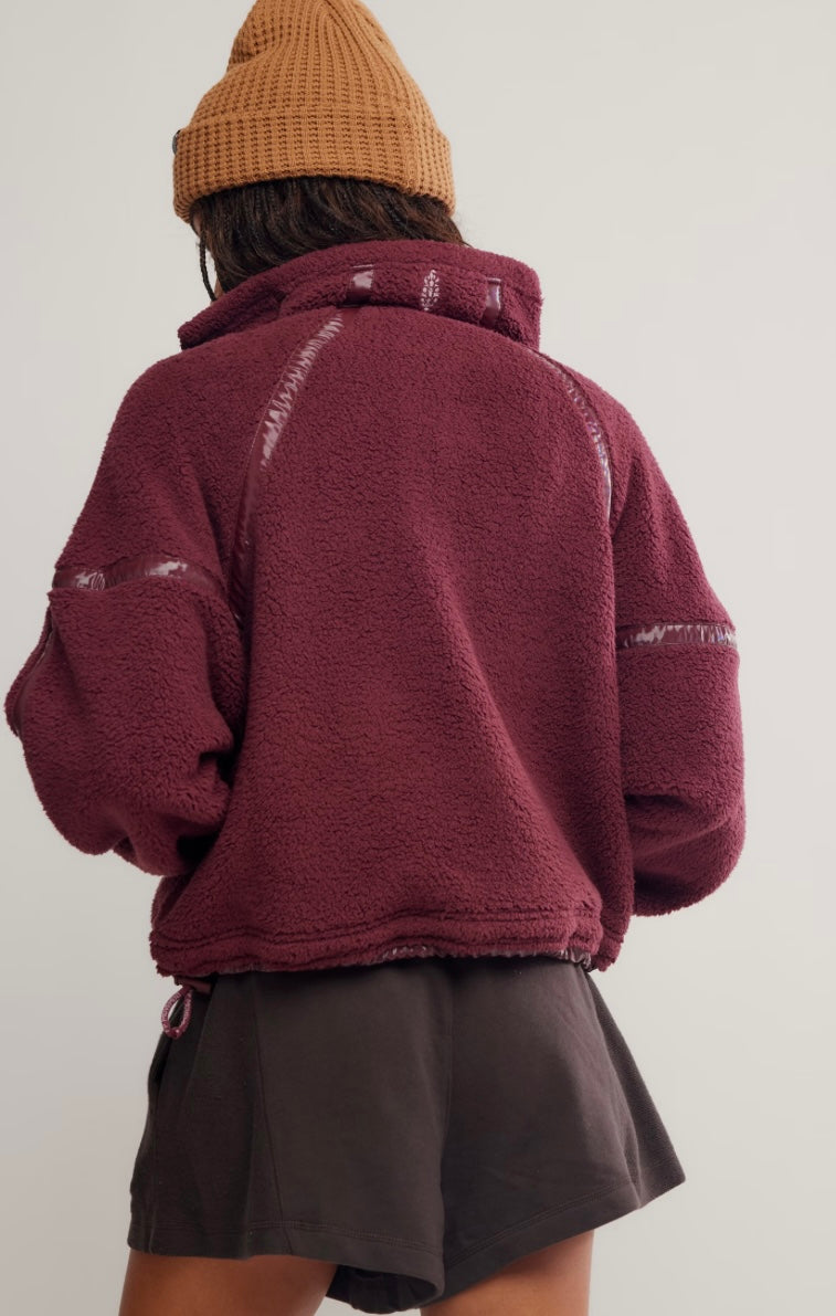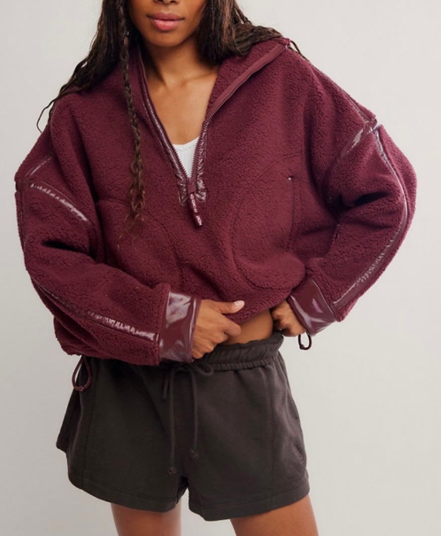 Take your layer game to the next level with this effortlessly essential half-zip featured in a slouchy, relaxed fit and stunning sherpa fabrication with contrast piping at hems for the ideal sporty finish.