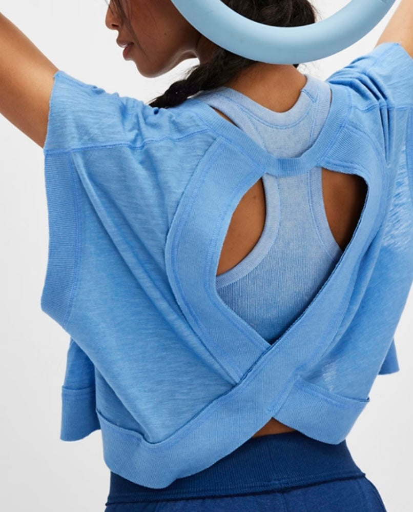 Make your next move in this light and airy layering tee featured in a slouchy design with a wrapped cutout back that’ll keep you cool through all your workouts.