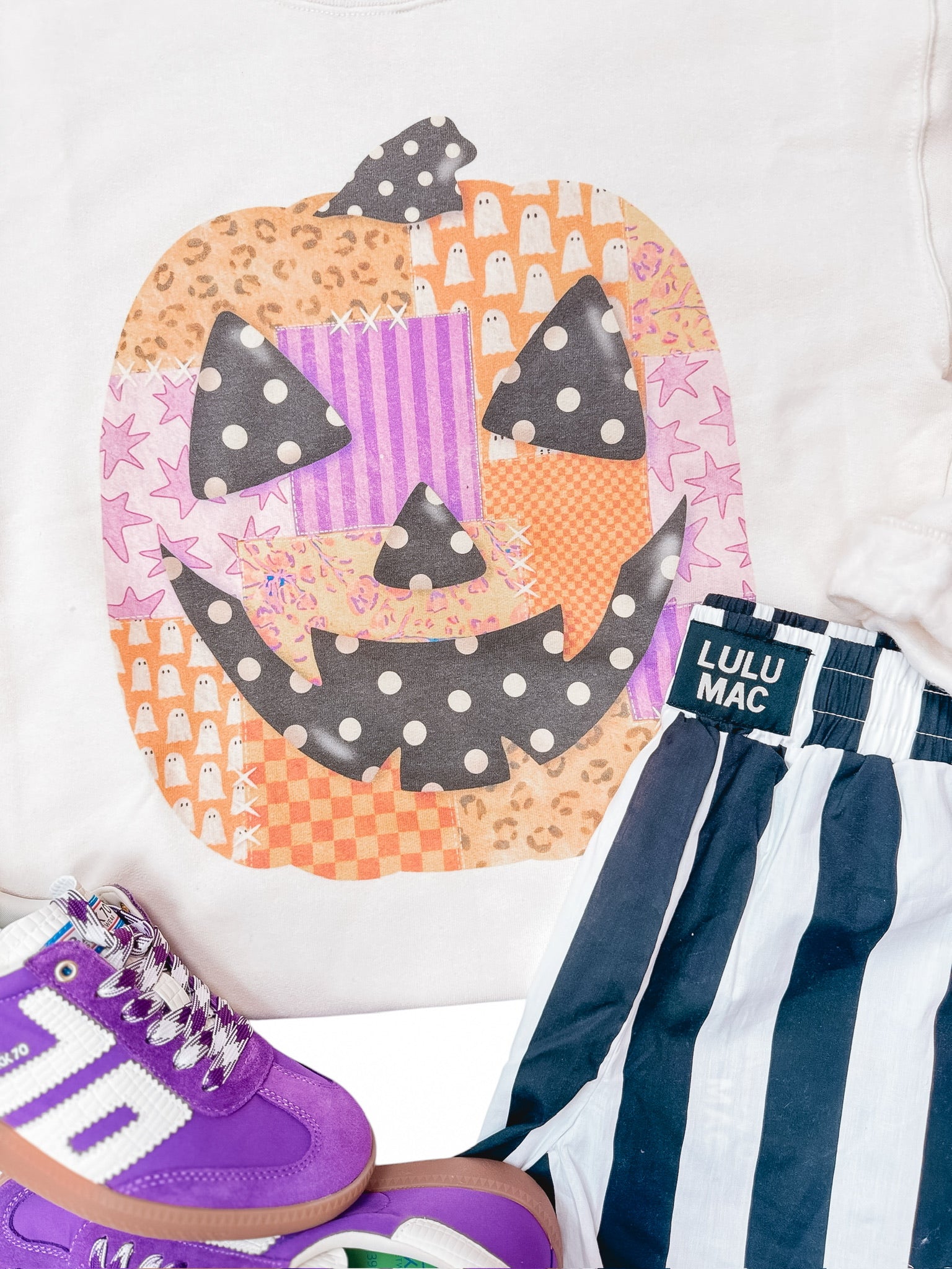 Celebrate the spooky season in style with the Patchwork Jack O Lantern Sweatshirt, designed for both youth and adults. Featuring a charming patchwork pumpkin design, this cozy sweatshirt brings festive Halloween spirit to your wardrobe. Perfect for chilly autumn nights, it offers comfort and a playful look that’s great for trick-or-treating or seasonal gatherings. Embrace the fun of Halloween with this unique and comfortable sweatshirt.