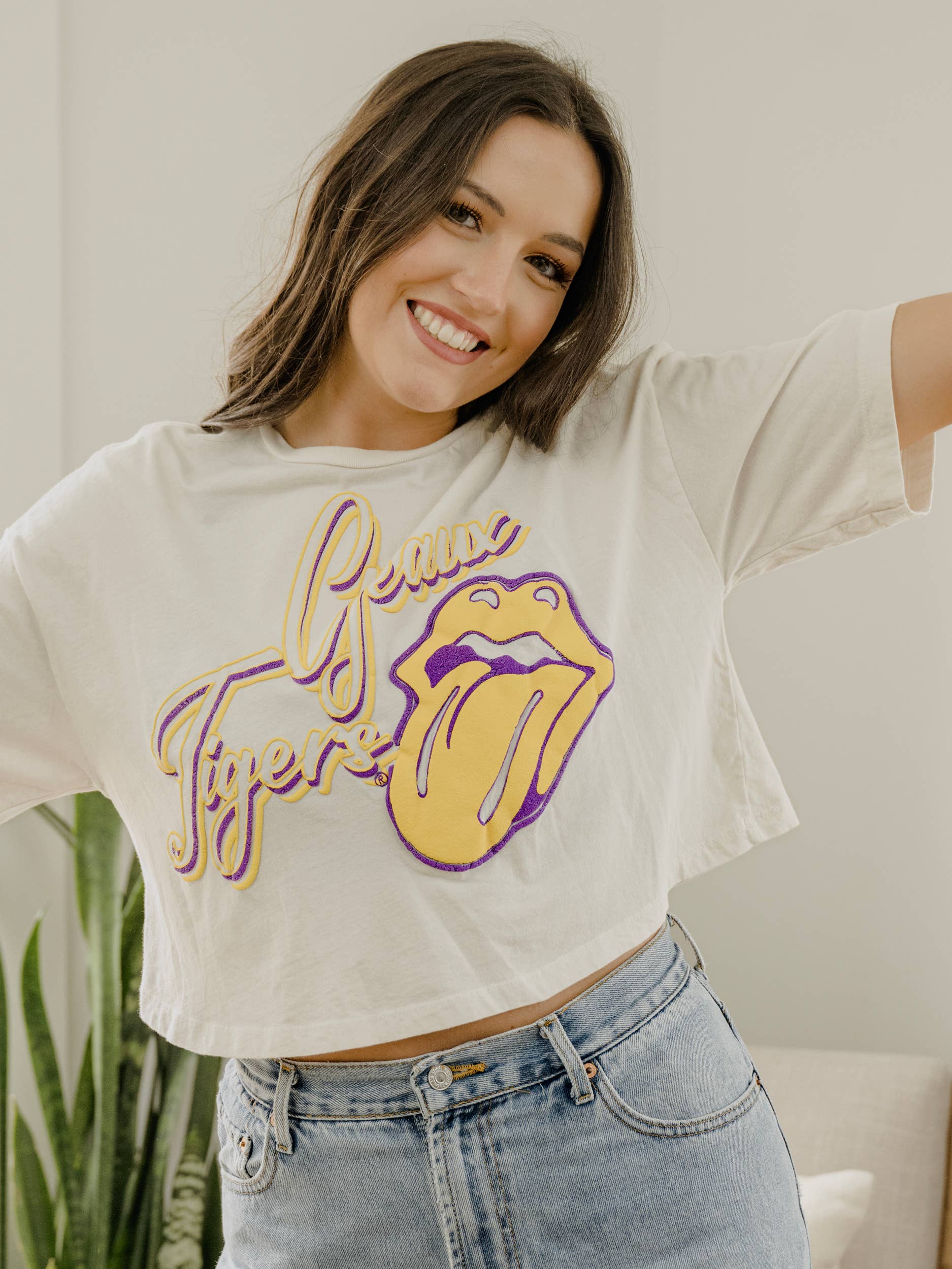 Rolling Stones LSU Geaux Tigers Malibu Off White Cropped Tee