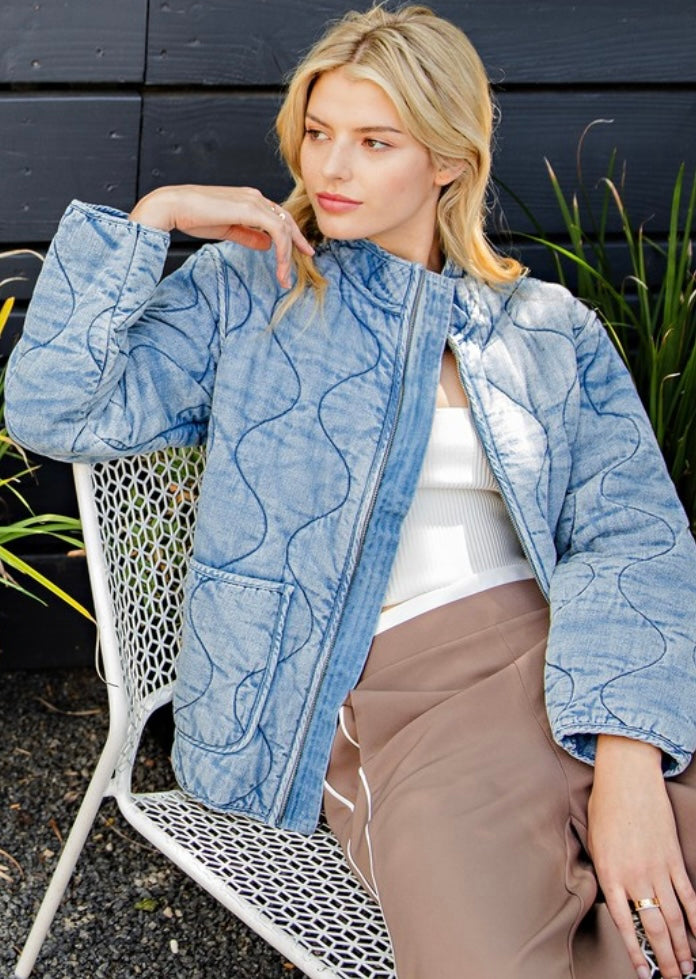 Snow Washed Denim Quilted Jacket