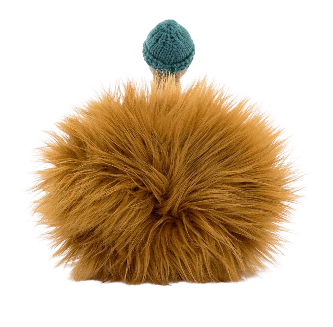 Theo Turkey may have plumage, but this turkey's taking no chances. He's knitted himself a bold teal hat, ready for the winter! Theo has over-sized honey feet, a round cocoa tummy and a silky ginger tail. Most impressive of all, this proud turkey has a beautiful suedette caruncle (that's the wobbly bit under his beak). A dazzling gift for happy holidays.