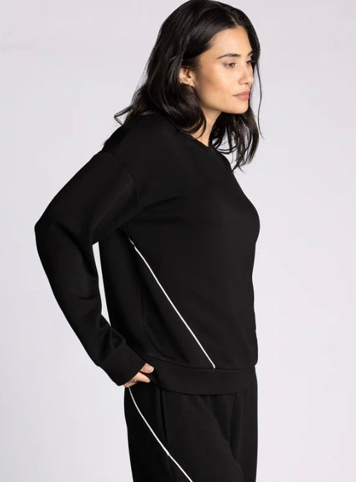 Made for easy layering, this buttery soft top is the perfect throw-on for casual comfort. Featured with contrast piping details for a sporty touch and drop shoulder for a relaxed fit. Make it a set with the Britney Pant.