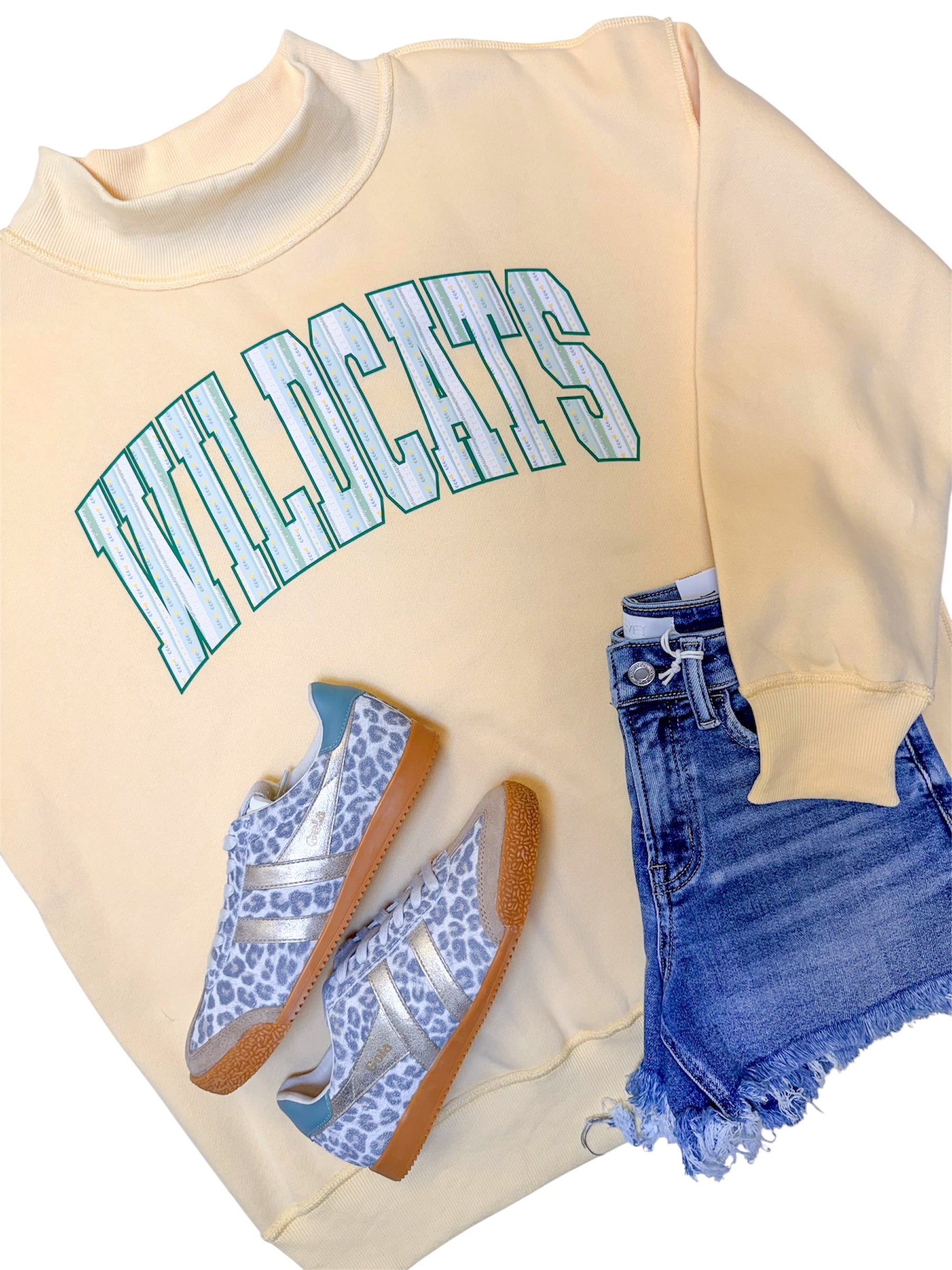 Reversible Yellow Wildcats Mock Neck Sweatshirt, one side printed in Wildcats, reverse side solid yellow!
